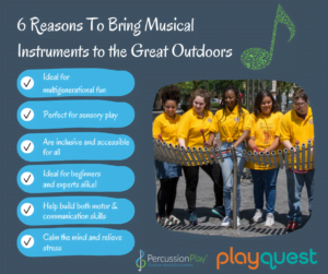 PlayQuest Recreation works with Percussion Play to bring their outdoor instruments into playgrounds and parks in Western Canada. Their instruments create musical and social harmony