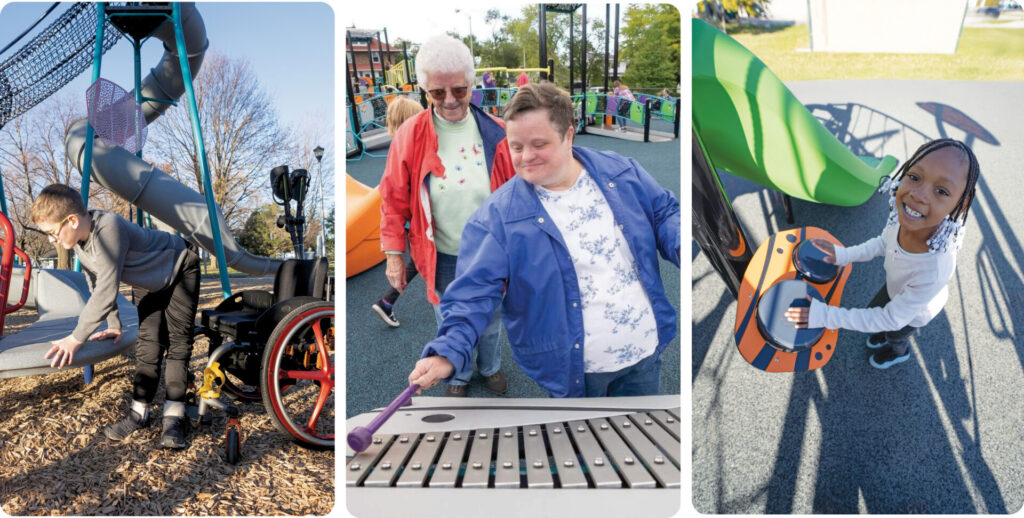 Inclusive play means creating spaces where no one feels left out. Accessible play ensures that people of all physical, sensory, and cognitive abilities can enter, move through, and actively participate in play and recreation.