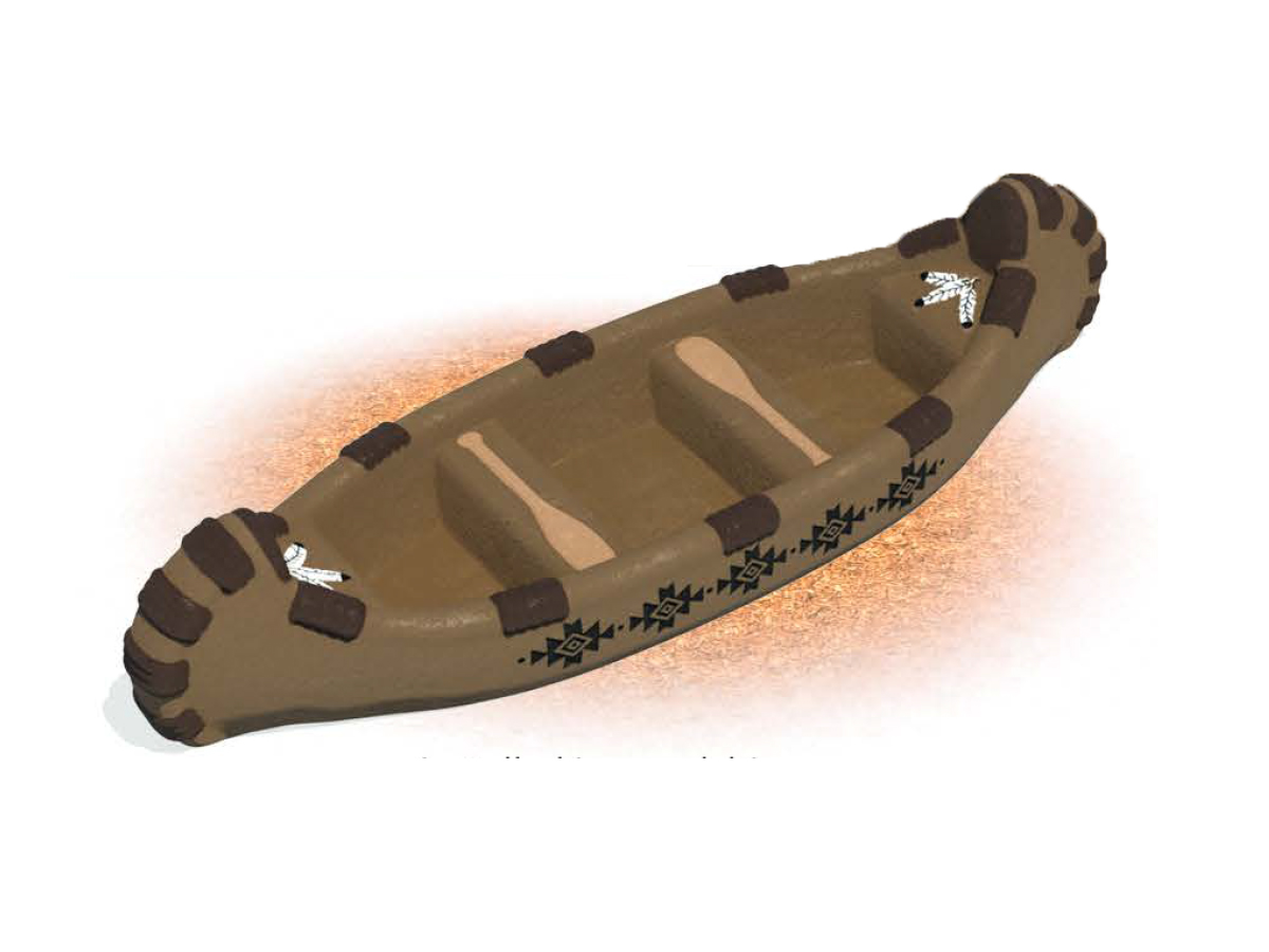 Modeled after an indigenous Canoe, with customized graphics .