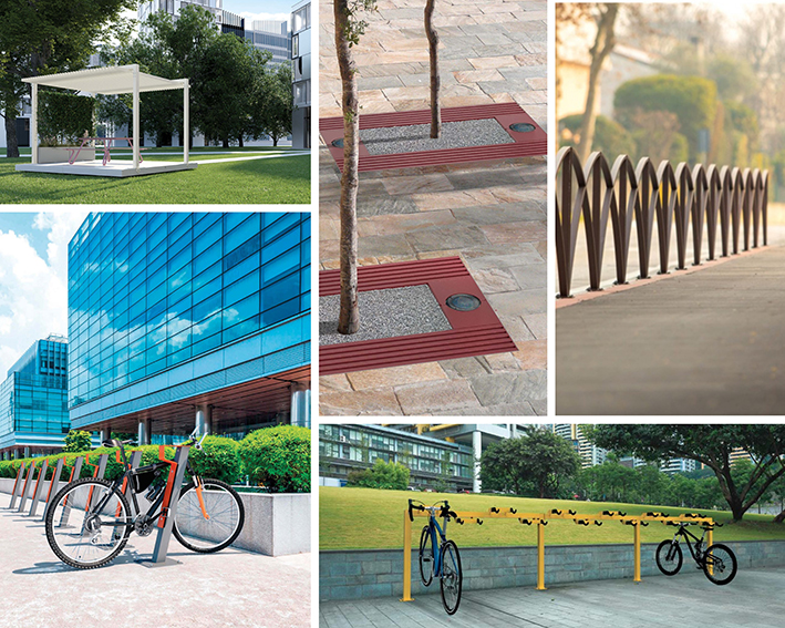 Beyond furnishings, we offer a suite of complementary elements to complete your outdoor design strategy. These components contribute to accessibility, safety, sustainability, and aesthetics.